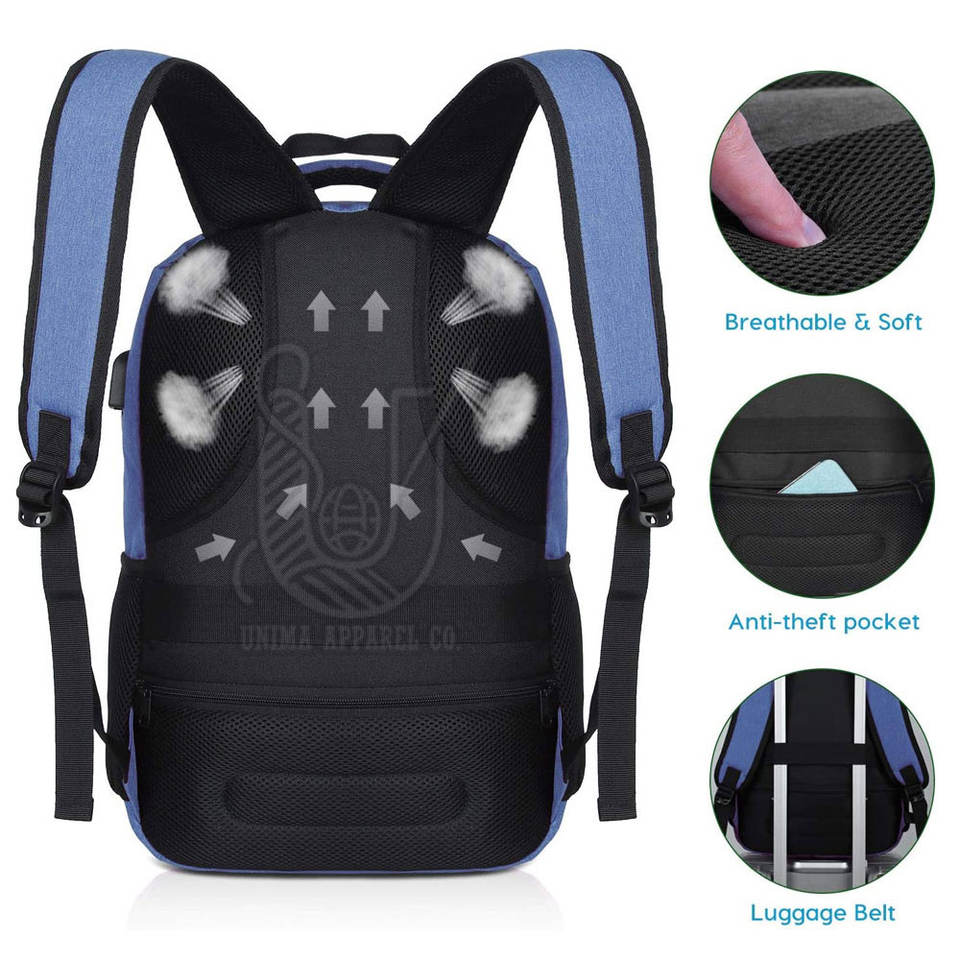 Sac à dos unisexe d'extérieur en stock avec port USB, en polyester imperméable, capacité 56-75L - Couleurs et logos personnalisables
