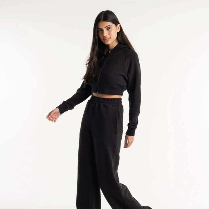 En stock : Sweat à capuche court zippé pour femme, vêtement de sport, design personnalisé