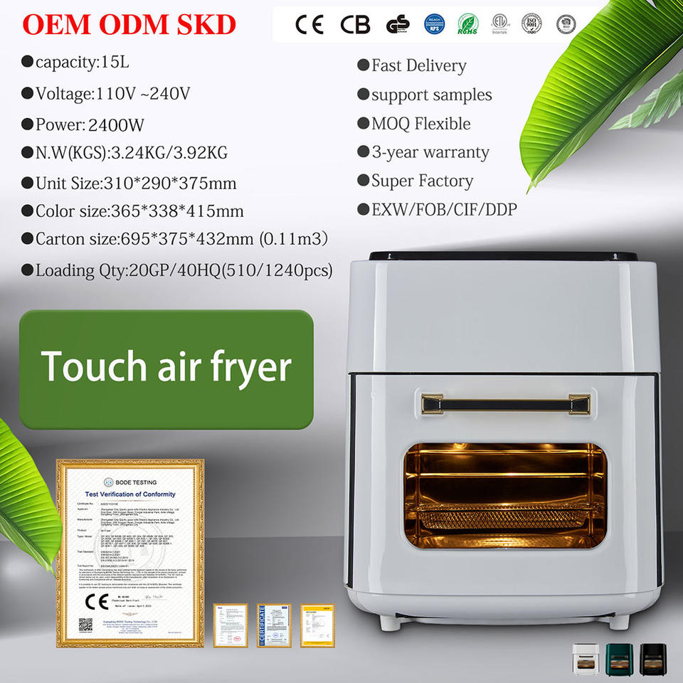 Friteuse à Air Chaude Électrique Intelligente Multi-fonctions de 15 L avec Contrôle Digital et Fenêtre de Visualisation, Sans Huile, En Stock