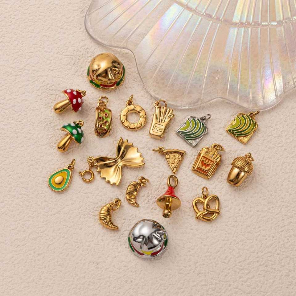En stock : Collier pendentif DIY en acier inoxydable, série Gourmet, plaqué or 18 carats par placage sous vide, avec entretoises de chaîne tendance