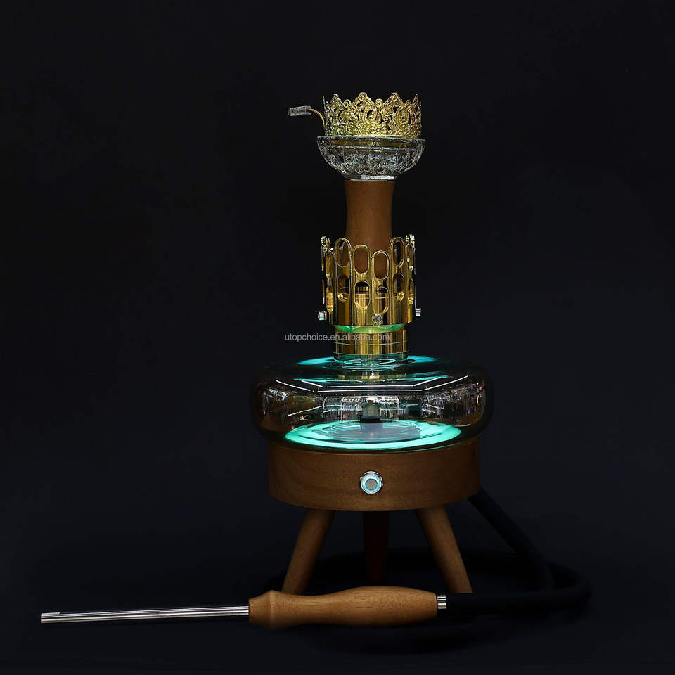In Stock Touch Switch Hookah Set Technique LED Light Atmosphere Metal Chicha Narghile Solid Wood Flying Saucer Shisha
