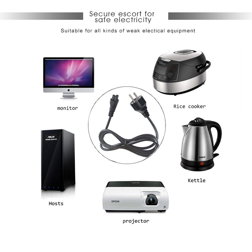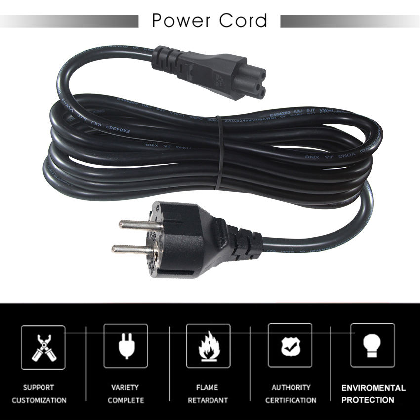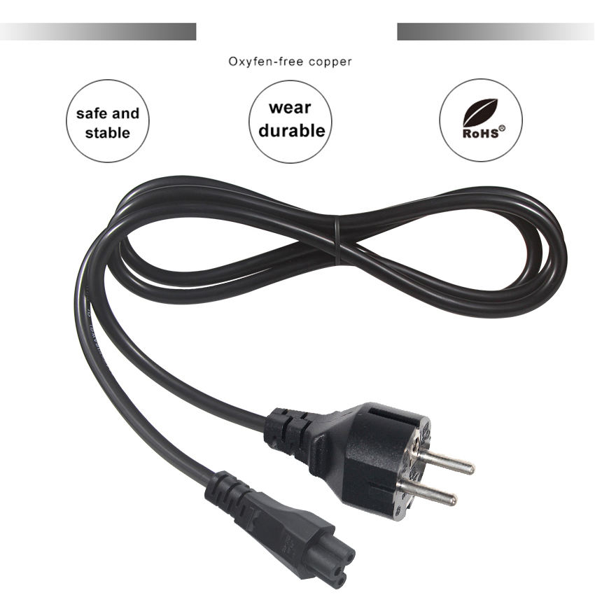 En stock fil PVC Vde Ac avec 3 pôles France Iec 60320 prise électrique C5 cordon d'alimentation Eu
