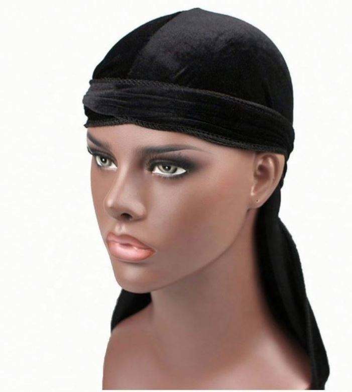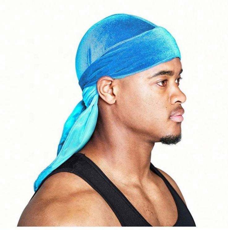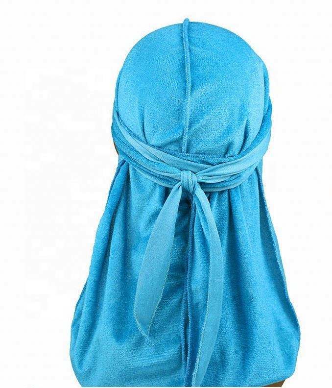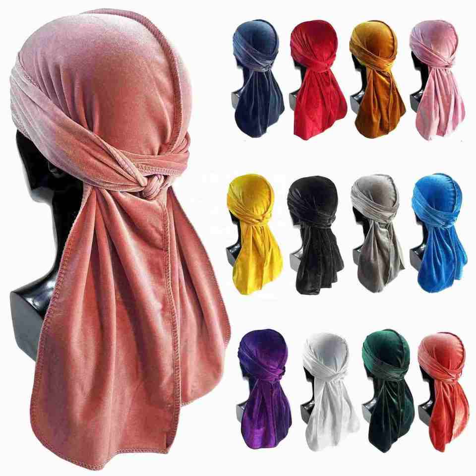 En stock, vente en gros, bon marché, unisexe, foulards de tête en velours doux, bonnets de pirate multifonctionnels de couleur unie pour l'extérieur, durags à longue queue pour hommes