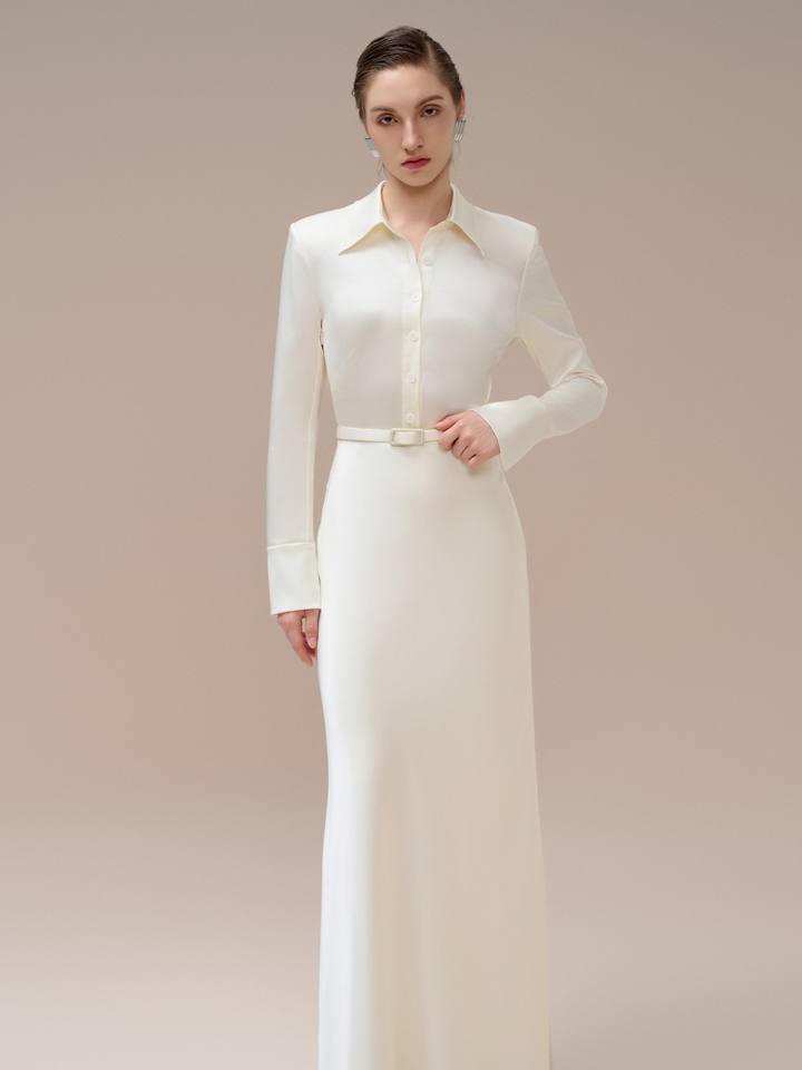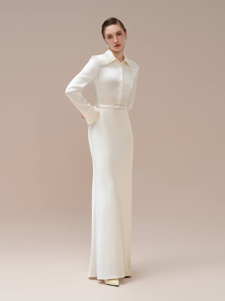 In Stock Women'S Clothing Dress A-Line Shape Audrey Day Dress Mison Satin Fabric Women'S Clothing Whiteant Vietnam Wholesaler