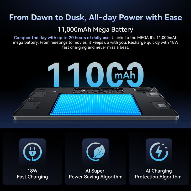 En Stock Tablette Blackview MEGA 8 PC 13 Pouces Écran FHD+ 90Hz Batterie 11000mAh Appareil Photo IA 50MP 4 Haut-Parleurs BOX 4G Android 15