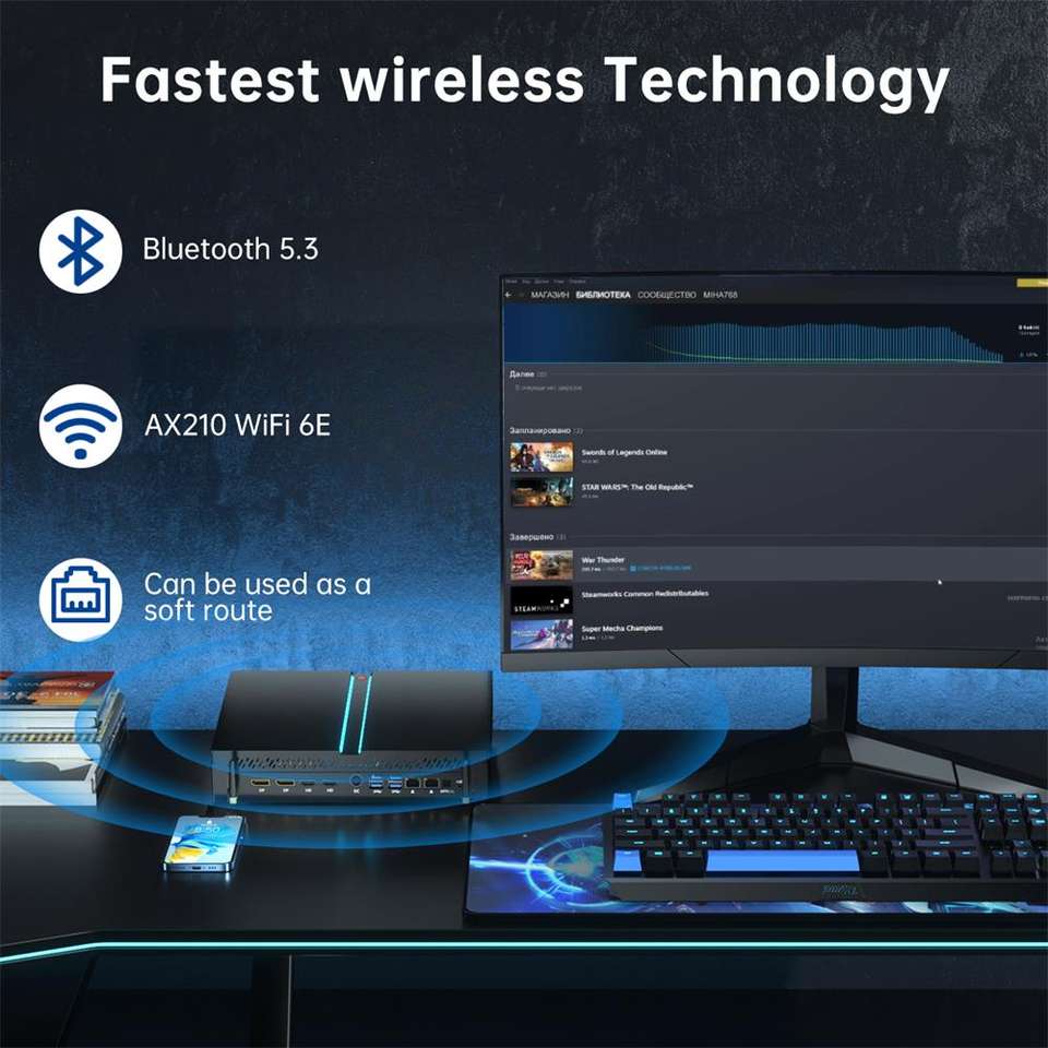 Intégré avec un module WiFi 6E AX210 2400M et Bluetooth 5.3