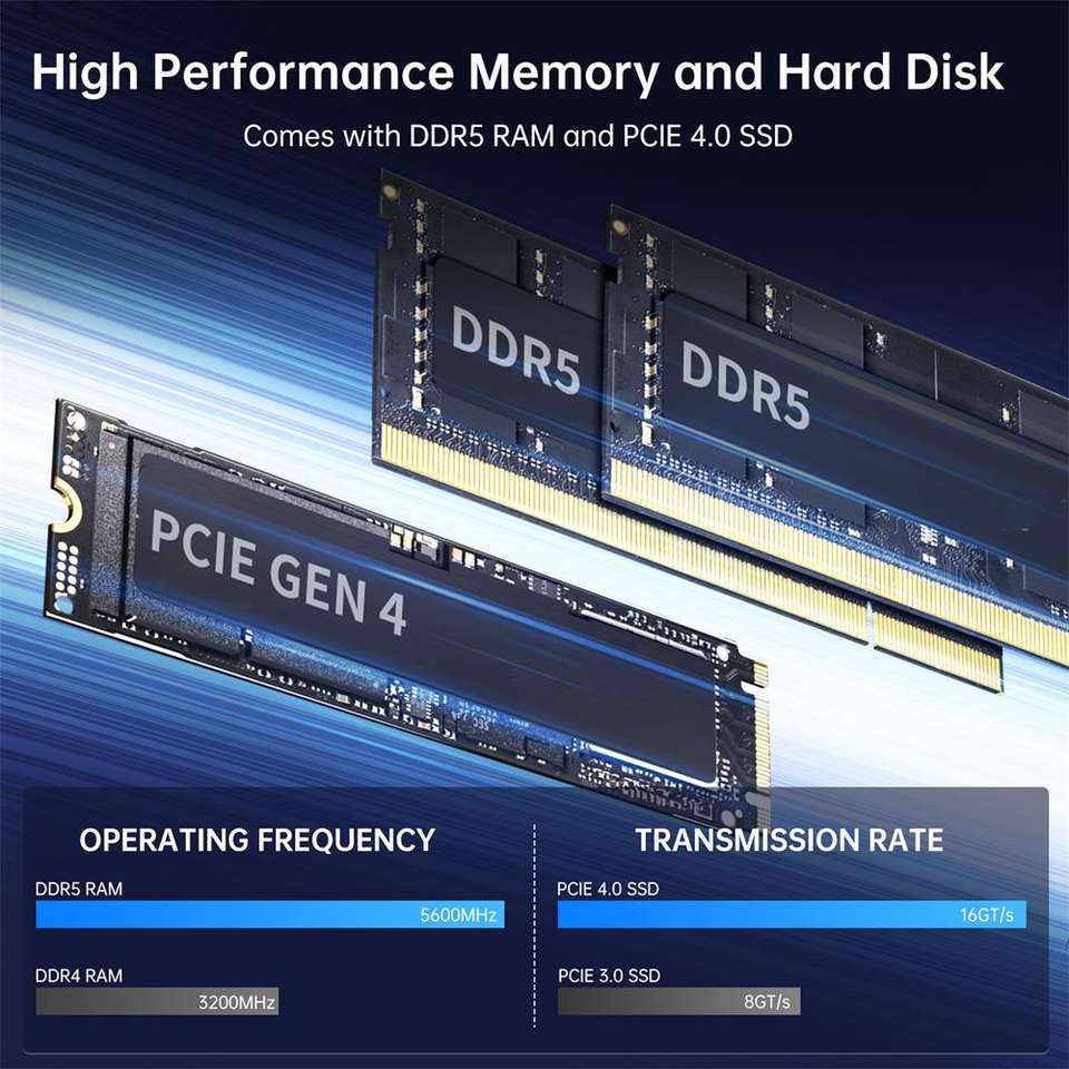 Mémoire:SSD M.2 NVMe 4.0, supporte l'ajout de deux HDD/SSD SATA 2,5"