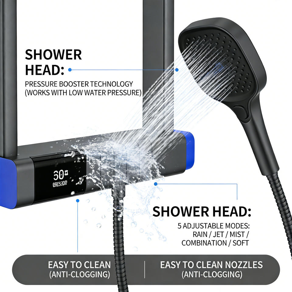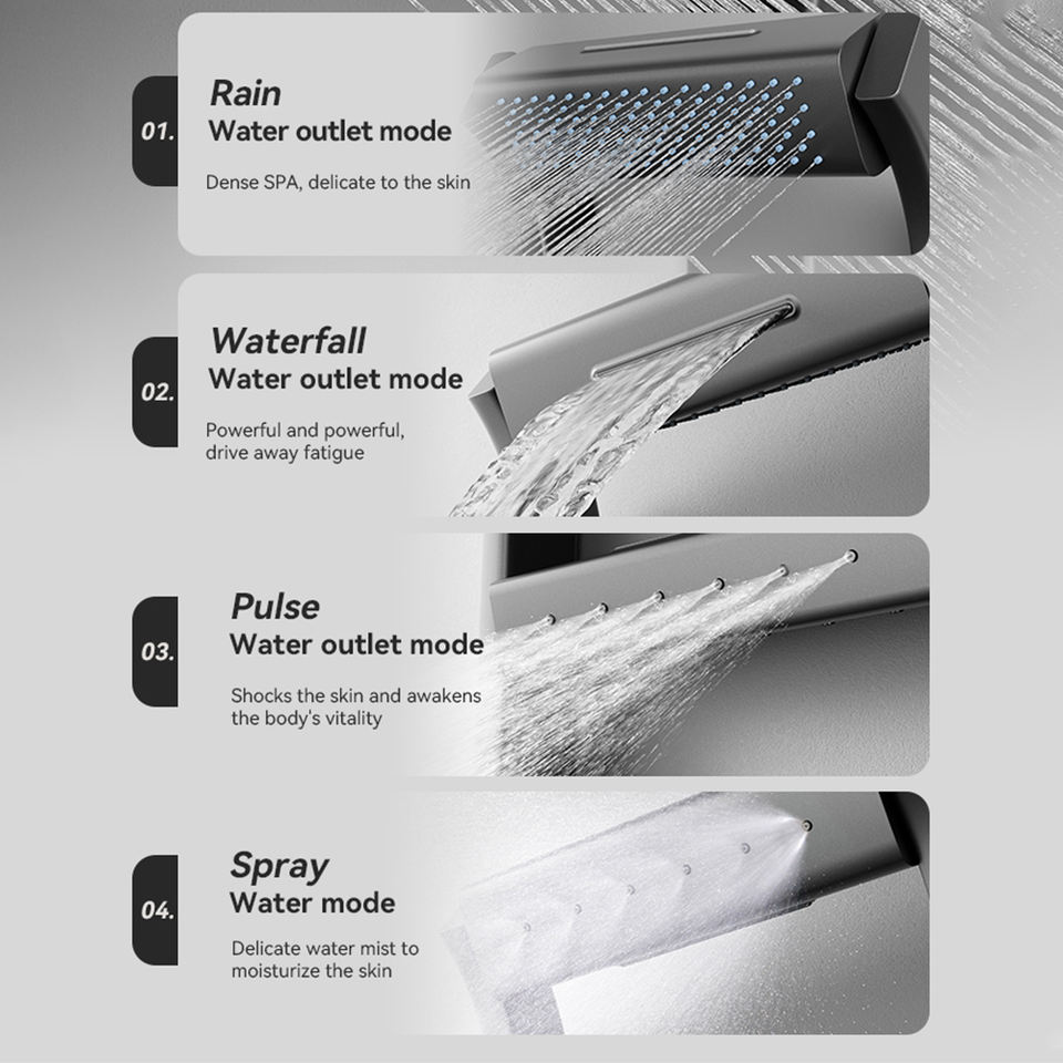 4 modes de pulvérisation: Offre des expériences de douche variées, y compris la pluie, le massage, la cascade et le jet doux, répondant à différentes préférences et exigences.