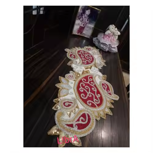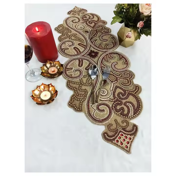 Incalculable valeur chemin perlé napperon de Table Unique Design Floral pour barre de nourriture conception de mariage brodé décor de Table à manger