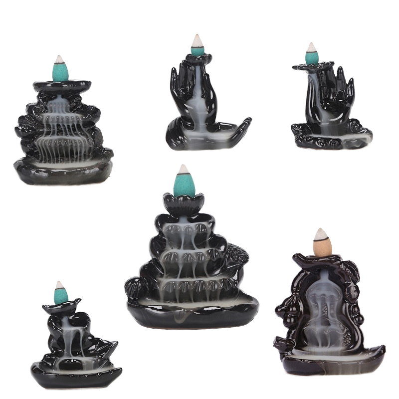 Brûleur d'encens artisanat en céramique pierre sol bouddha tour à main brûleur d'encens reflux chemin d'encens eau de montagne