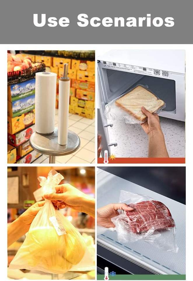 Rouleau de 1000 sacs jetables écologiques en plastique pour fruits, légumes, pain et stockage alimentaire transparent en cuisine