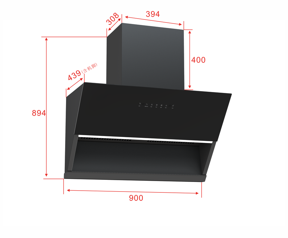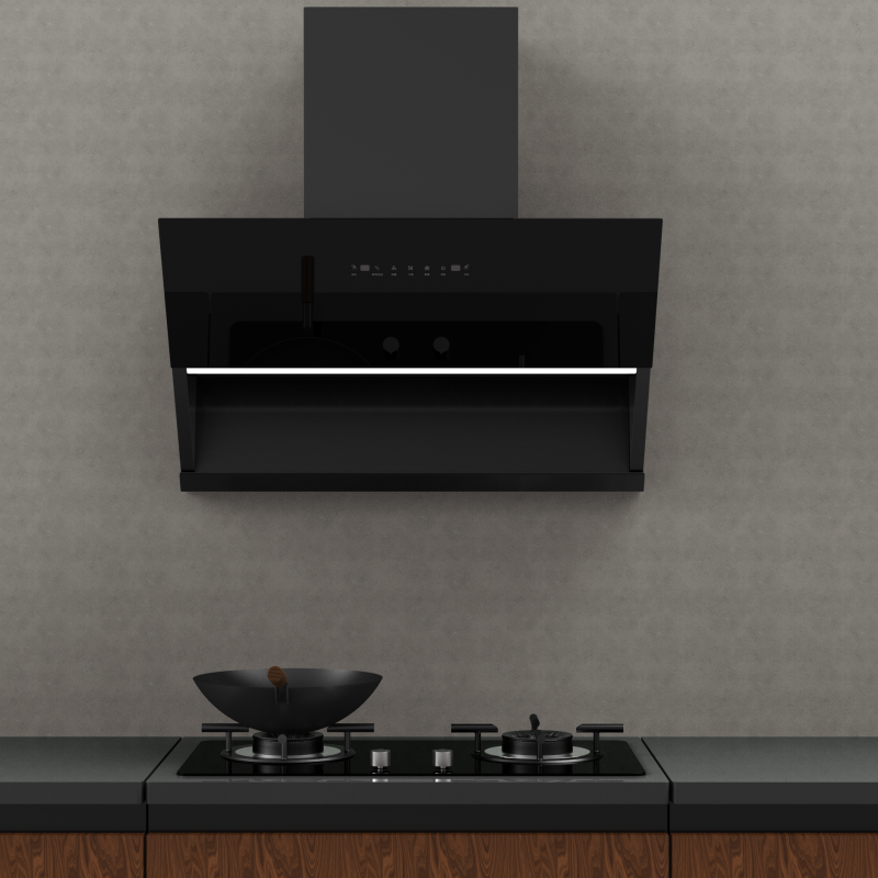 Hotte aspirante inclinée à aspiration latérale, extracteur électrique à foyer, forte aspiration latérale, hotte inclinée
