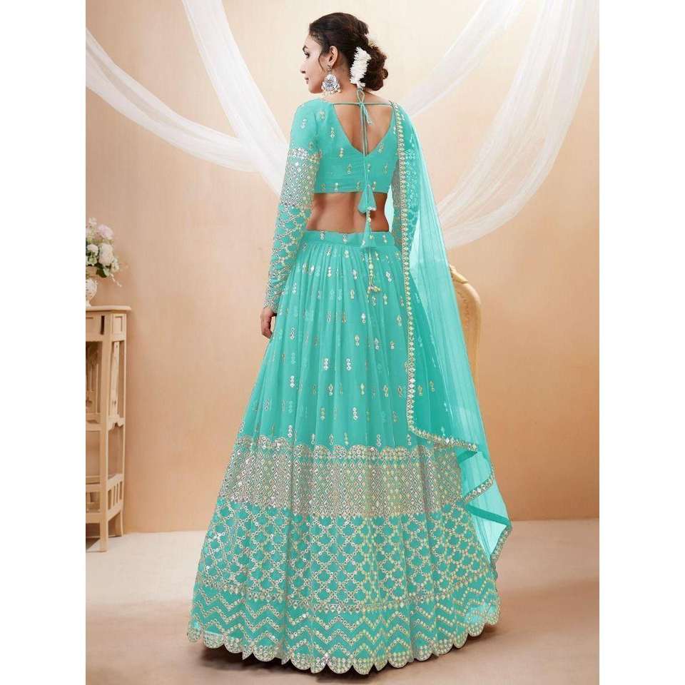 Incroyable bleu ciel paillettes Georgette fiançailles porter Lehenga Choli