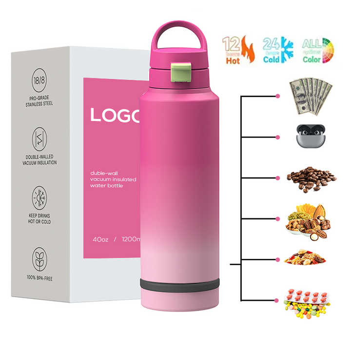 Bouteilles d'eau à double paroi isolées de 32 oz 40 oz en acier inoxydable incroyablement polyvalentes avec stockage au fond