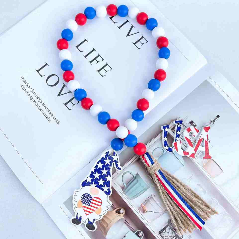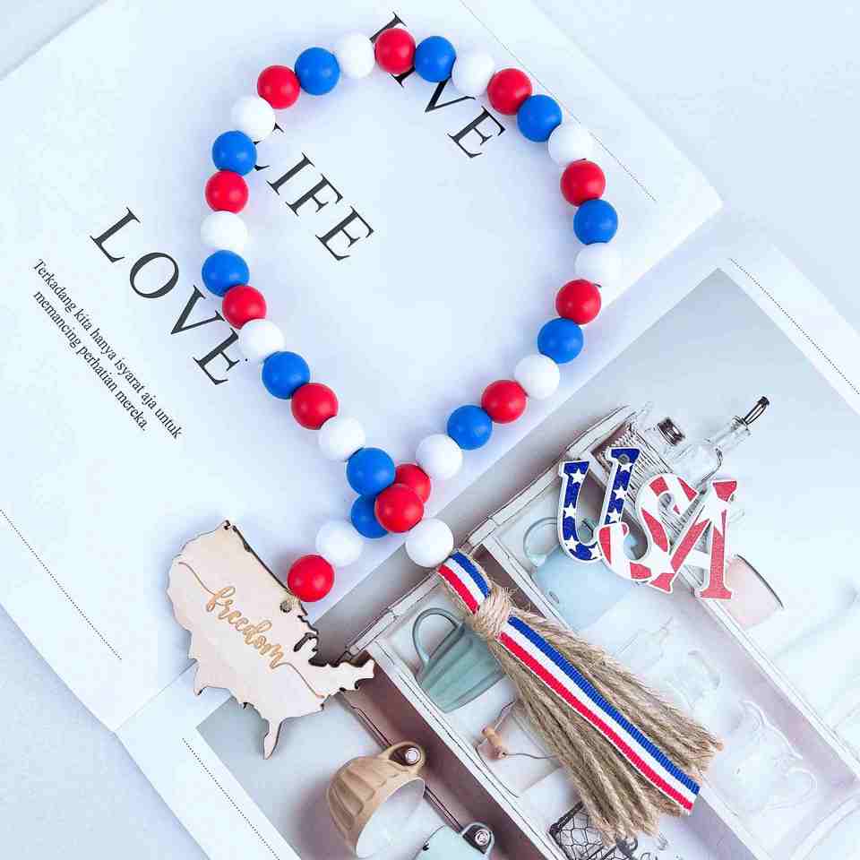 Keyword:Independence Day Farmhouse Wood Bead Garland