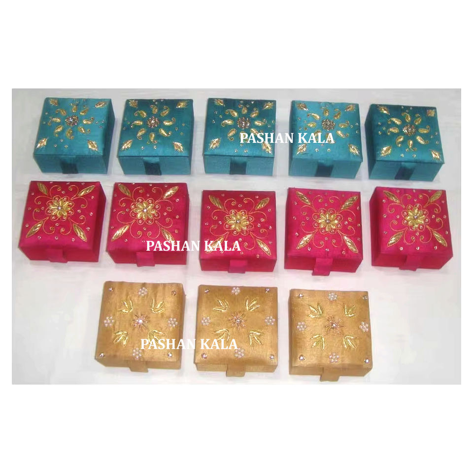 Tissu de haute qualité de conception unique et boîtes de forme carrée de cadeau de bijoux de broderie à la main de Zari pour la décoration et le but doué