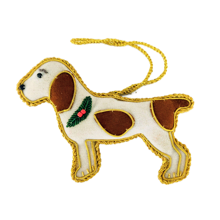Concessionnaire d'origine indienne vendant des ornements suspendus Beagle de chien de style design moderne fabriqués à la main pour la décoration de Noël à la maison