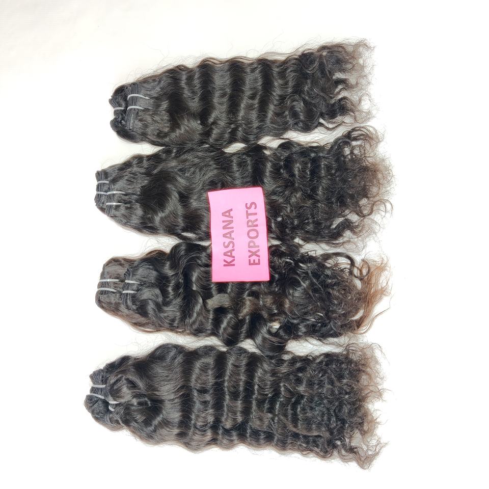 Extensions de cheveux indiens 100% naturels non traités vierges bruts noirs pour femmes Machine à cuticules alignées Double trame cheveux humains à vague profonde