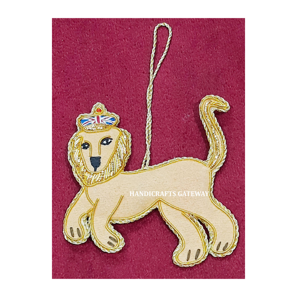 Ornement en forme de lion indien et de renommée mondiale, design en broderie à la main Zari, ornement décoratif suspendu pour la maison et les nouvelles fêtes