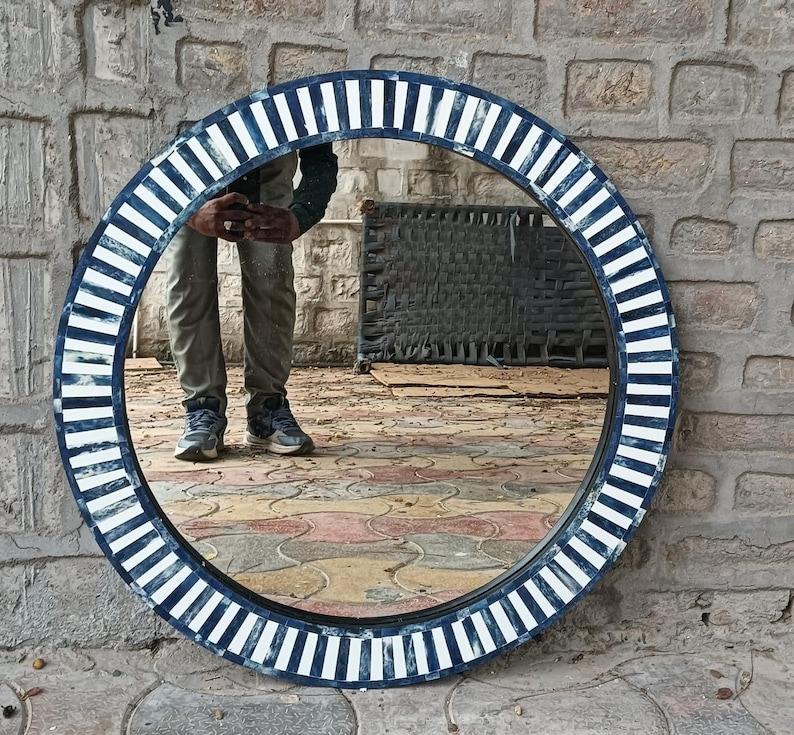 Miroir rond en incrustation d'os artisanal indien, miroir mural décoratif de luxe fait à la main, style Art déco