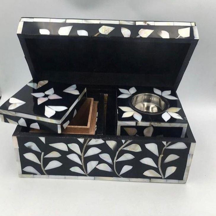 Boîte rectangulaire en os de chameau et nacre, incrustation artisanale indienne, écologique, moderne, personnalisée, spéciale Ramadan, États-Unis