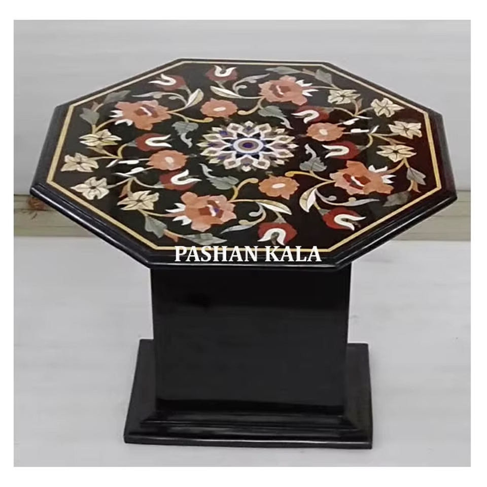 Indien belle main meilleure fabrication octogonale forme marbre noir nacre incrustation travail utilisé Table basse à la maison