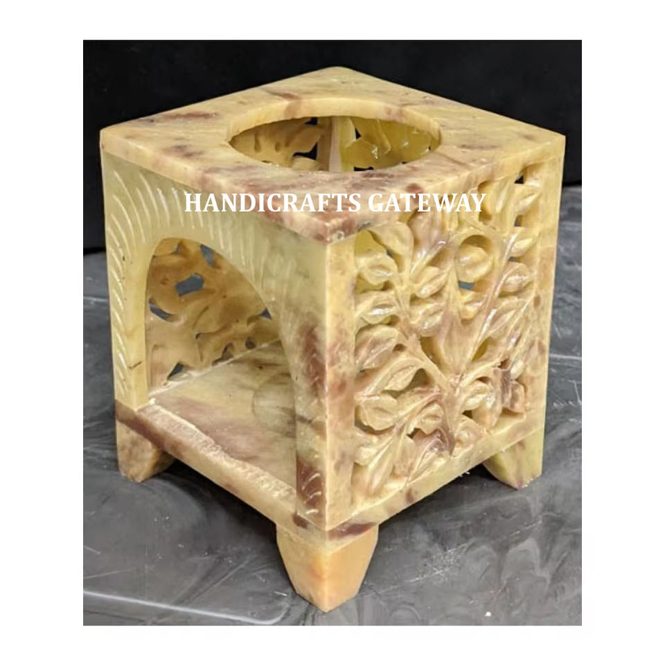 Brûleur à mazout d'arôme en stéatite naturelle fait à la main de meilleur concepteur indien forme carrée pour cadeau d'entreprise et décoration de la maison