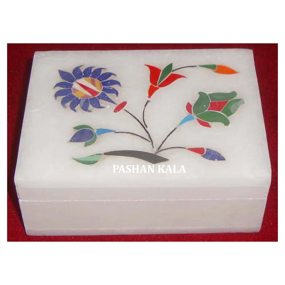 Boîtes à bijoux indiennes de meilleure qualité en marbre blanc incrusté de fleurs pour cadeau d'entreprise et alliances, grossiste et fournisseur
