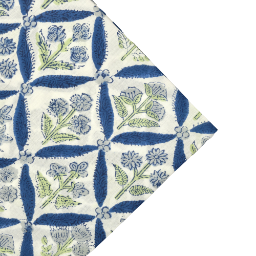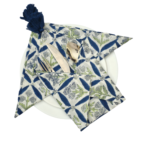 Indian Block Print 100% Pure Cotton Denim Stone Blue & Olive Green Napkins Reusable Table Decor Cloth for Dining Use
