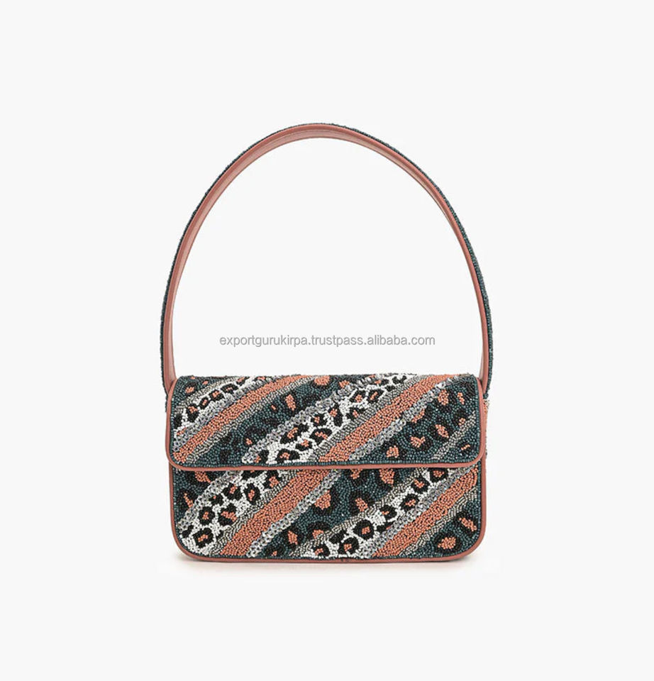 Sac à main pour femme de style bohème indien, grande capacité, fait à la main, pochette de soirée pour le shopping, avec style bohème perlé pour un usage quotidien
