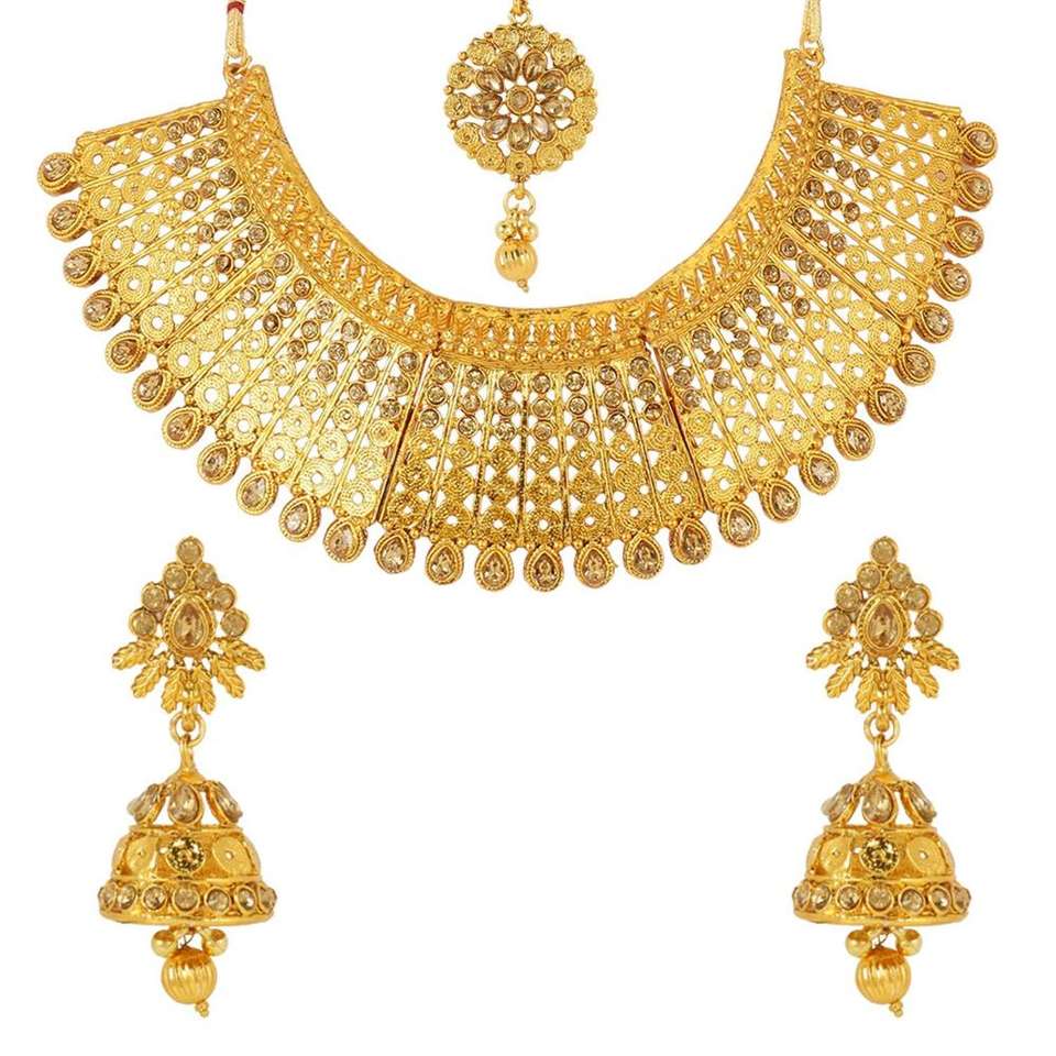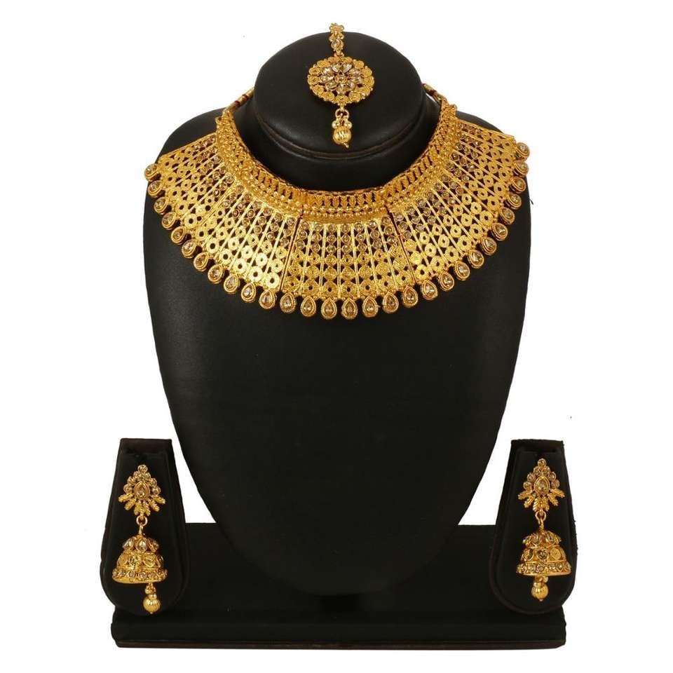 Indien Bollywood 14 K Plaqué Or Perles de Mariage Choker Collier Boucles D'oreilles Bijoux ensemble Pour Les Femmes