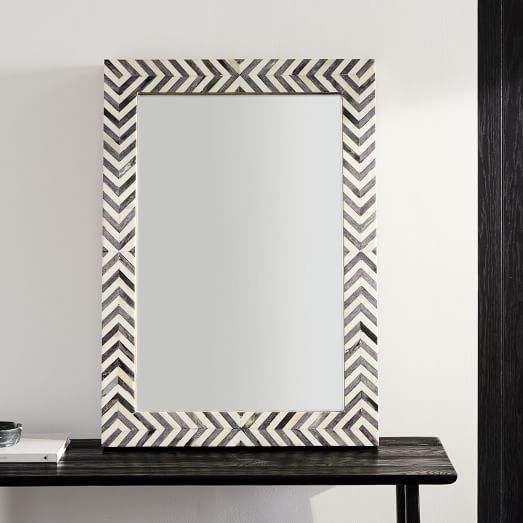 Cadre de miroir durable et écologique en incrustation d'os indien avec détails floraux modernes pour intérieurs de maison et décoration de salle de bain