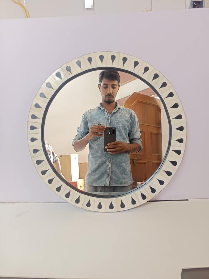 Miroir rond en incrustation d'os indien Art déco Luxe Fait main Écologique Décoration d'intérieur pour anniversaire