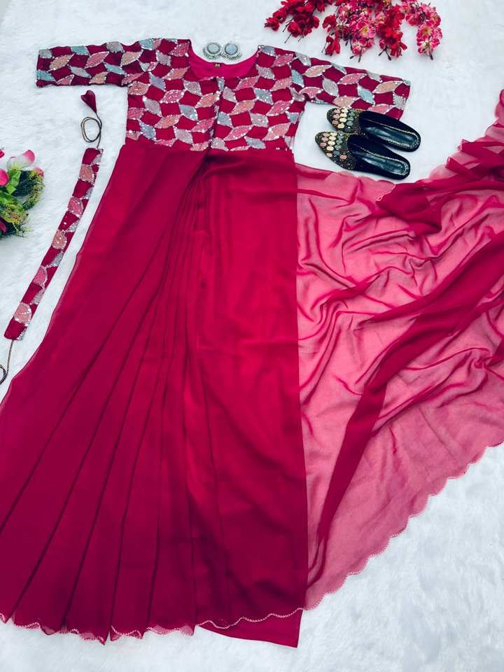 Saree de couleur rouge Georgette de créateur le plus vendu à l'exportation de boutique indienne avec broderie élégante sur Saree pour femmes filles