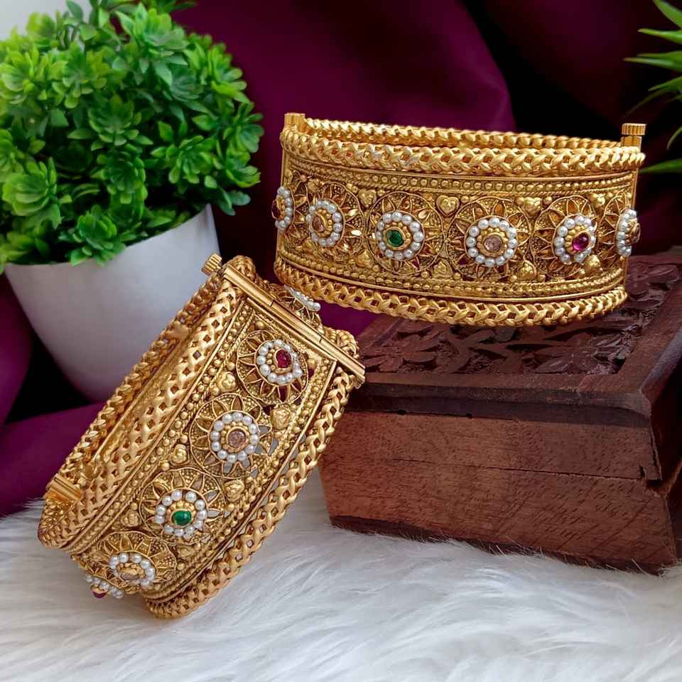 Feature:Embellished floral work, filigree pattern, gold plated bangle set