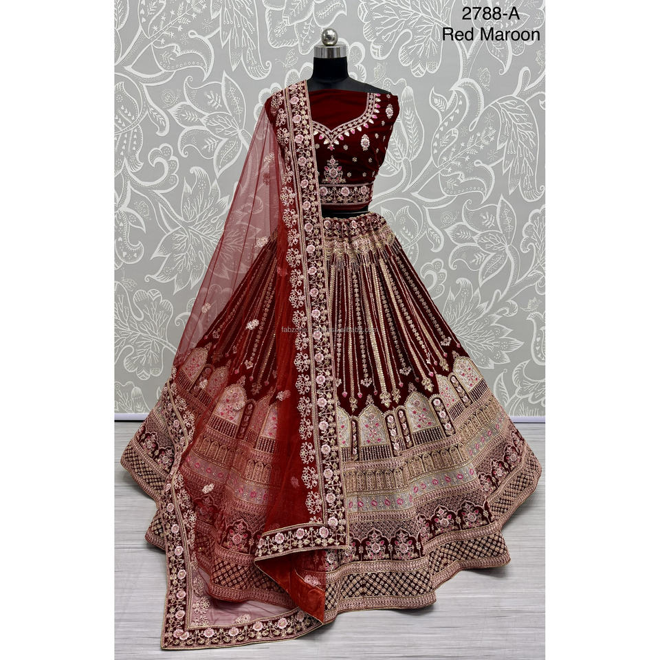 Collections de velours de vêtements de mariée indiens pour la mariée avec le travail de Zarkhan par Fabzone