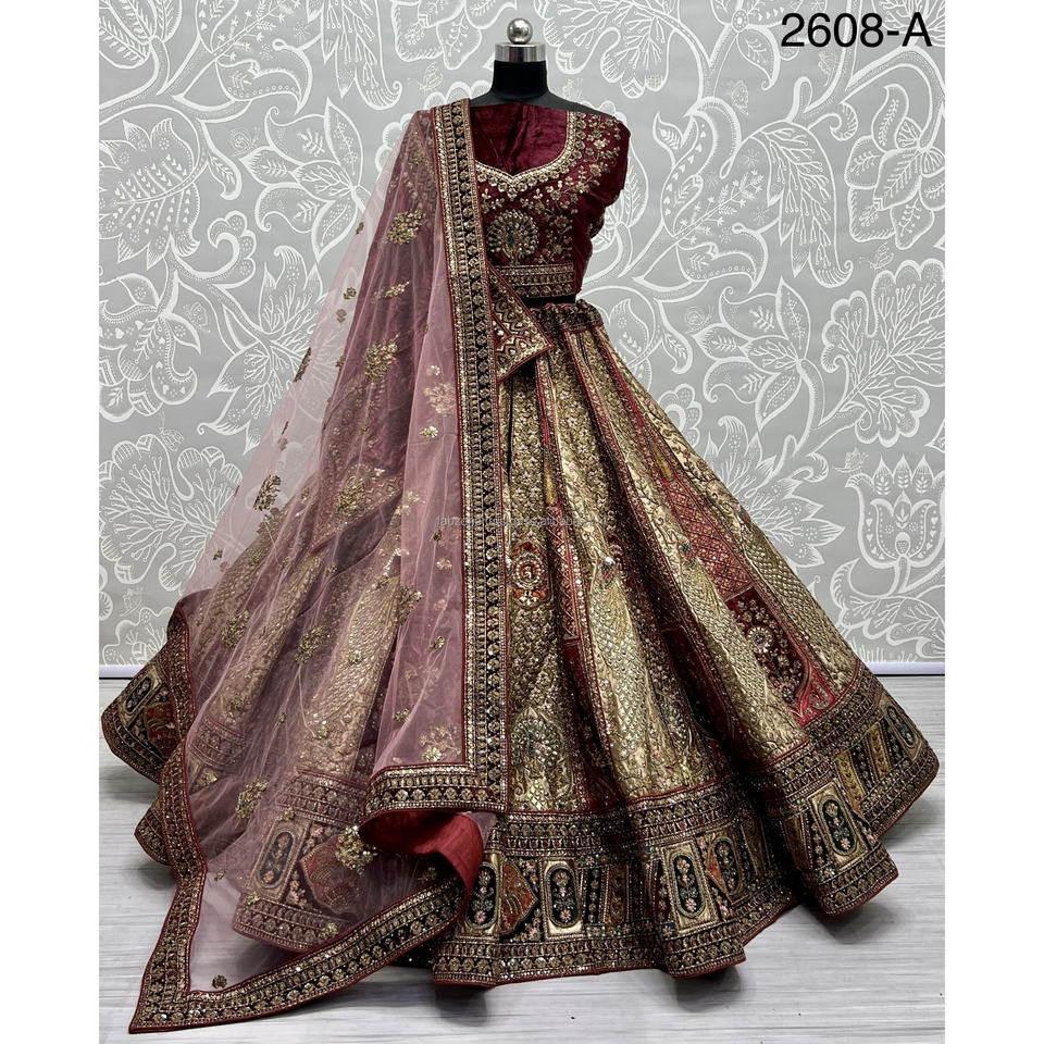 Collections de velours de vêtements de mariée indiens pour la mariée avec le travail de Zarkhan par Fabzone