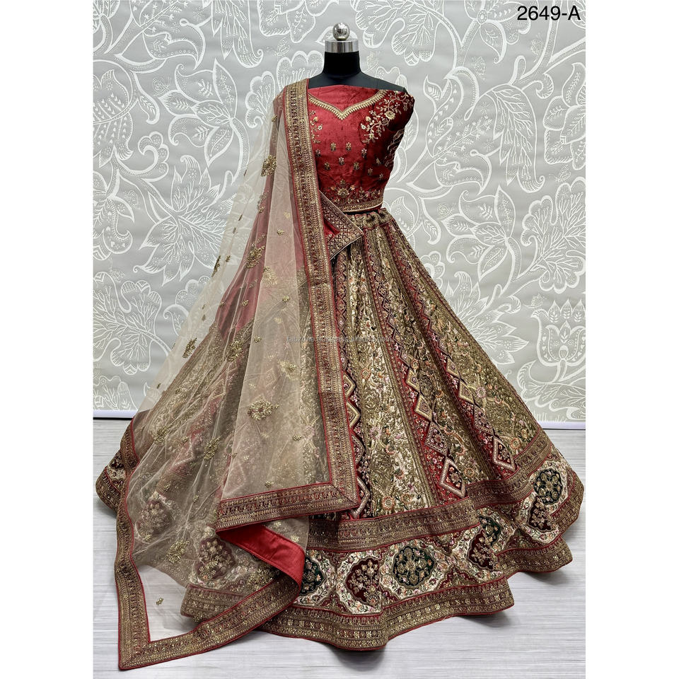 Collections de velours de vêtements de mariée indiens pour la mariée avec le travail de Zarkhan par Fabzone