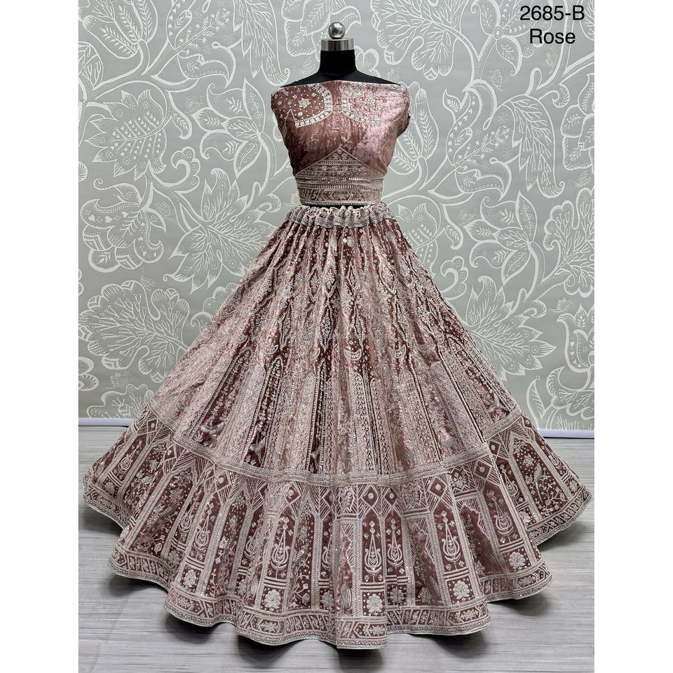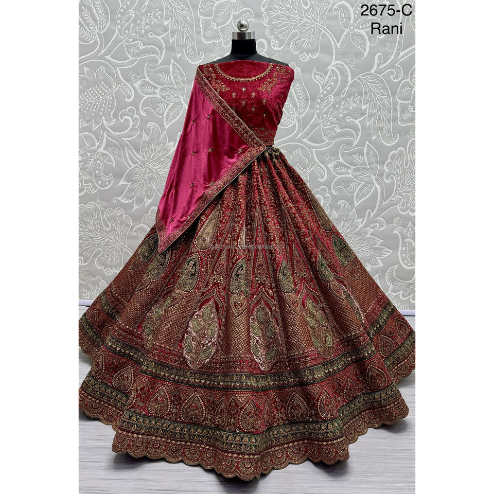 Indian Bridal Wear Velvet Collections for Bride With Zarkhan Work by Fabzone