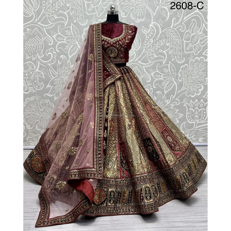 Collections de velours de vêtements de mariée indiens pour la mariée avec le travail de Zarkhan par Fabzone