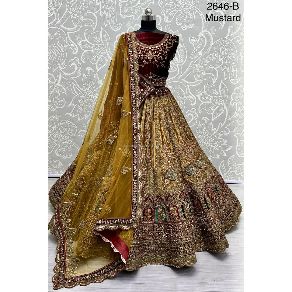 Indian Bridal Wear Velvet Collections for Bride With Zarkhan Work by Fabzone