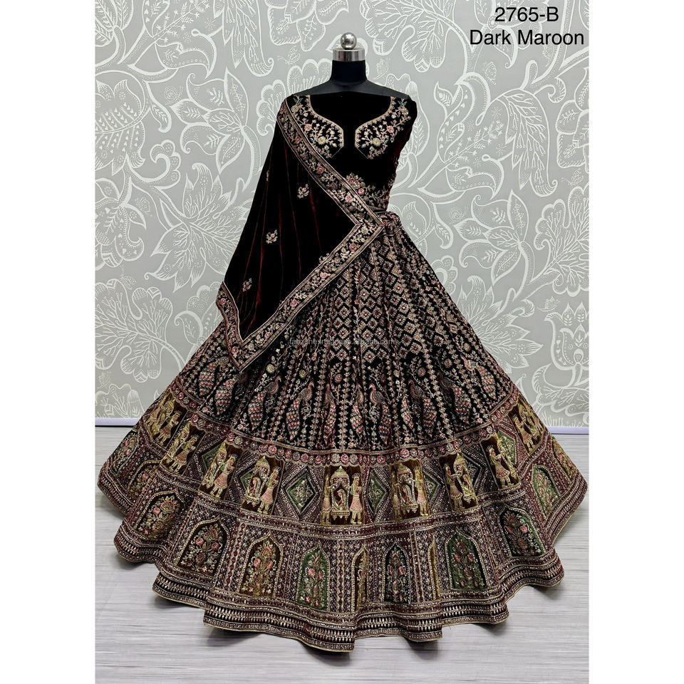 Indian Bridal Wear Velvet Collections for Bride With Zarkhan Work by Fabzone