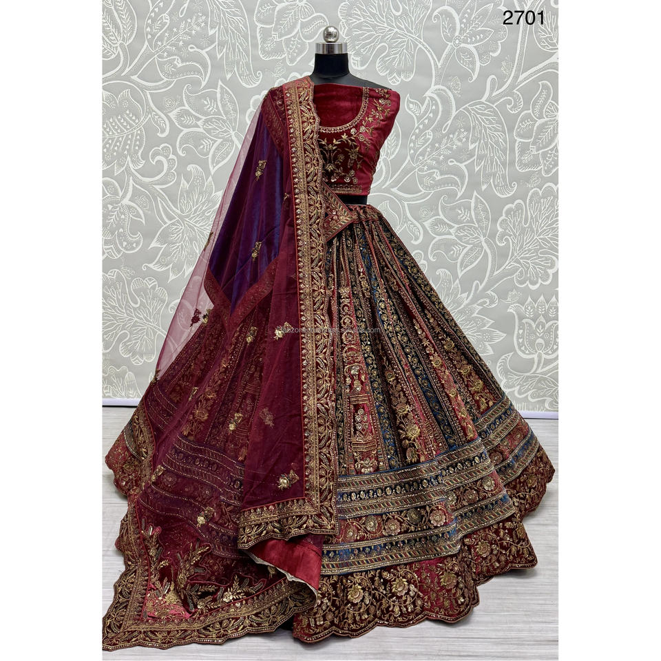 Collections de velours de vêtements de mariée indiens pour la mariée avec le travail de Zarkhan par Fabzone