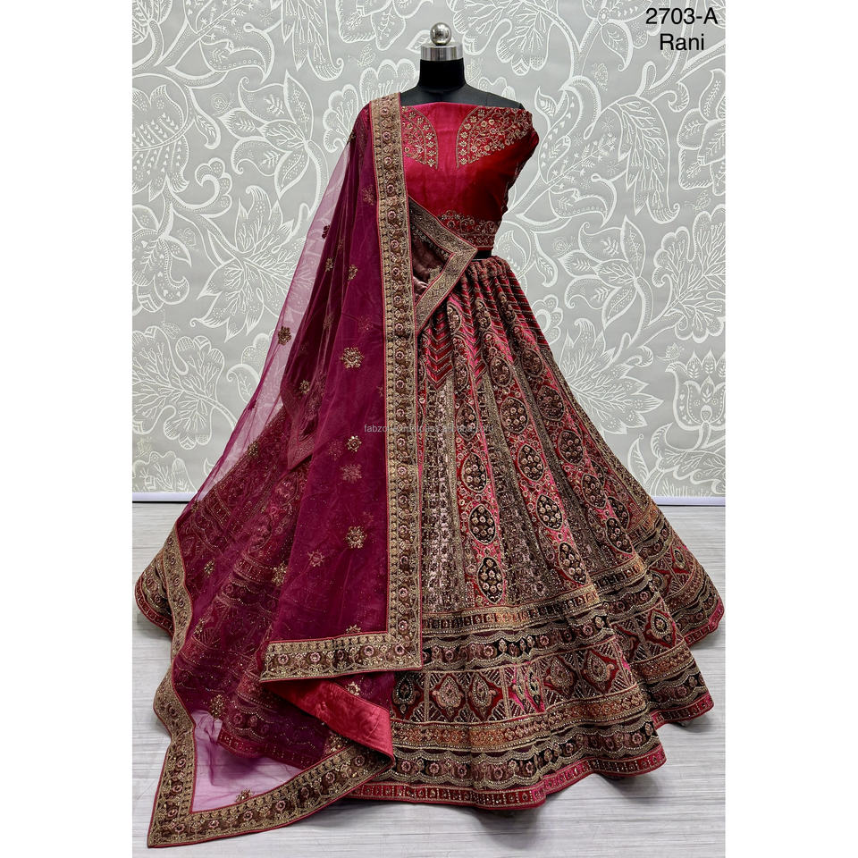 Indian Bridal Wear Velvet Collections for Bride With Zarkhan Work by Fabzone