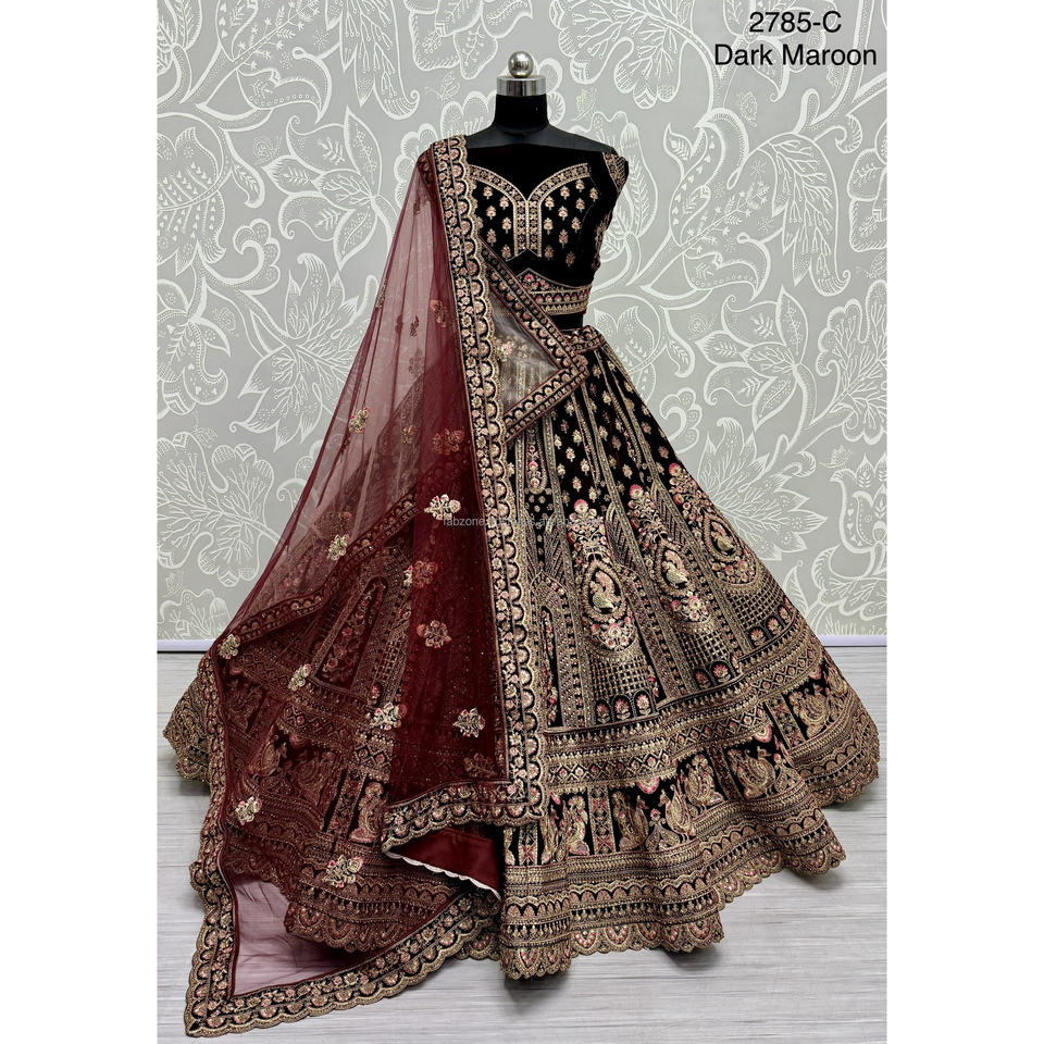 Collections de velours de vêtements de mariée indiens pour la mariée avec le travail de Zarkhan par Fabzone