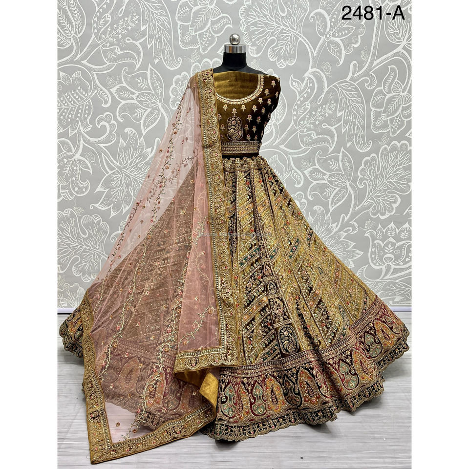 Collections de velours de vêtements de mariée indiens pour la mariée avec le travail de Zarkhan par Fabzone