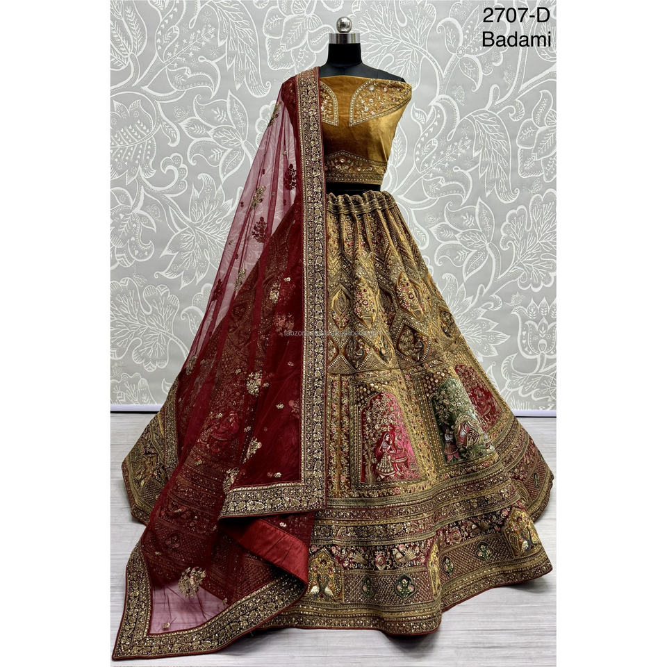 Indian Bridal Wear Velvet Collections for Bride With Zarkhan Work by Fabzone