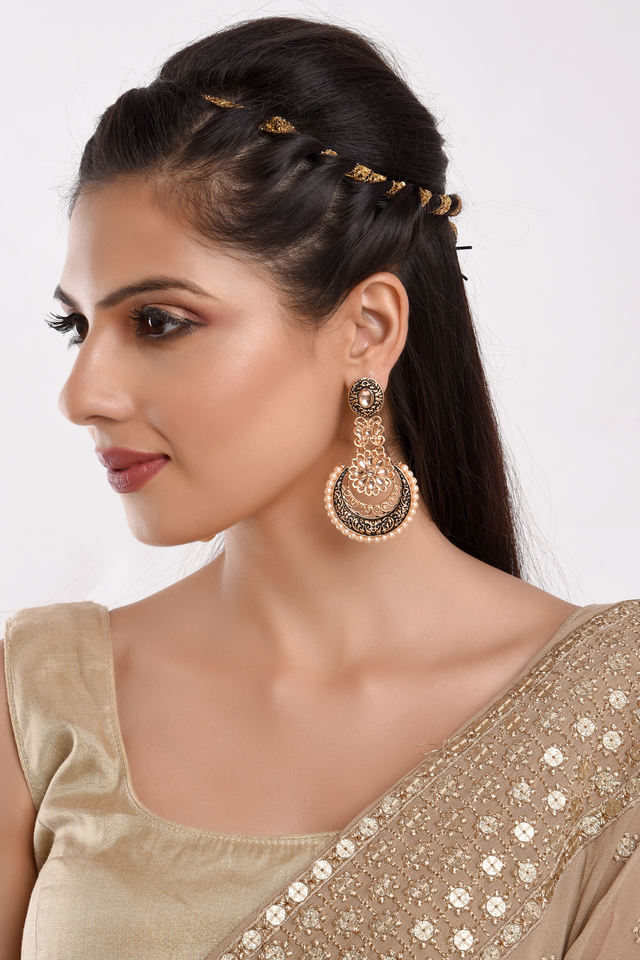 Design:antique designer floral dangling style big chandbali earrings set