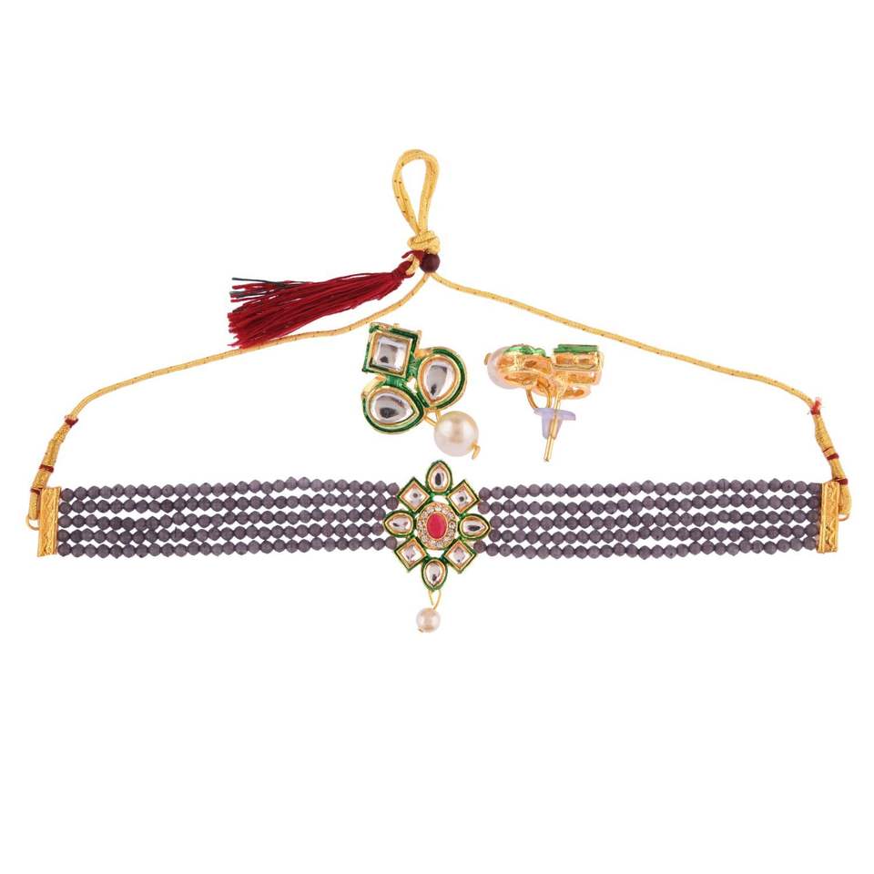 Design:Indian faux pearl beaded choker necklace set