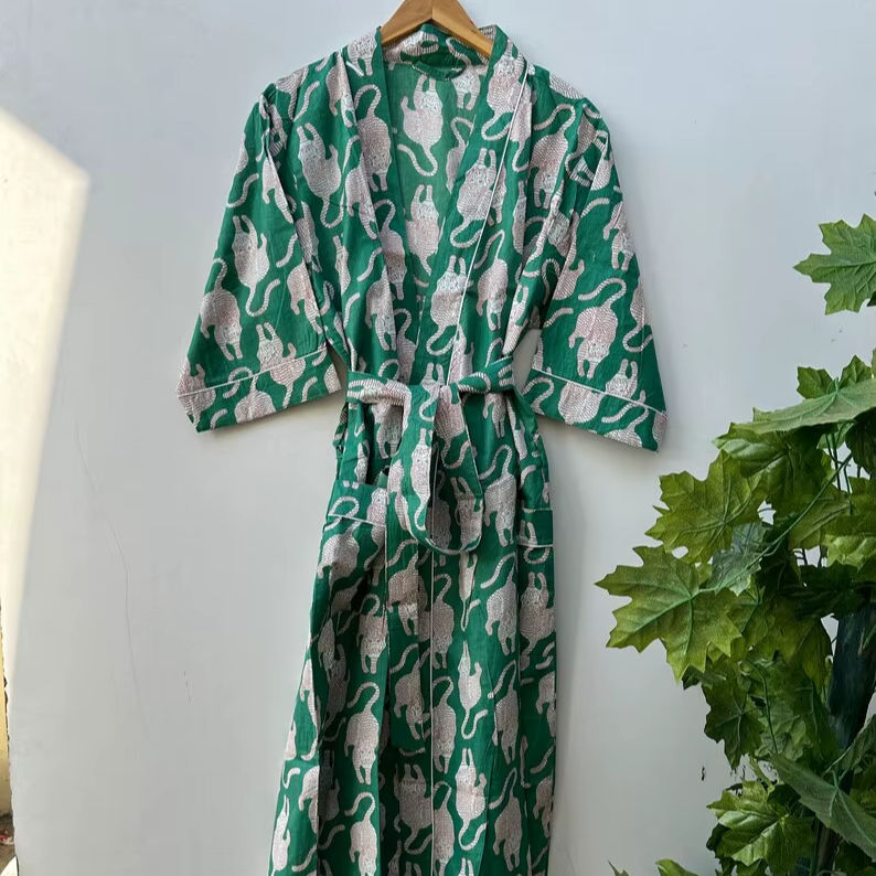 Robe kimono en coton indien à imprimé animal, style bohème, pour la plage